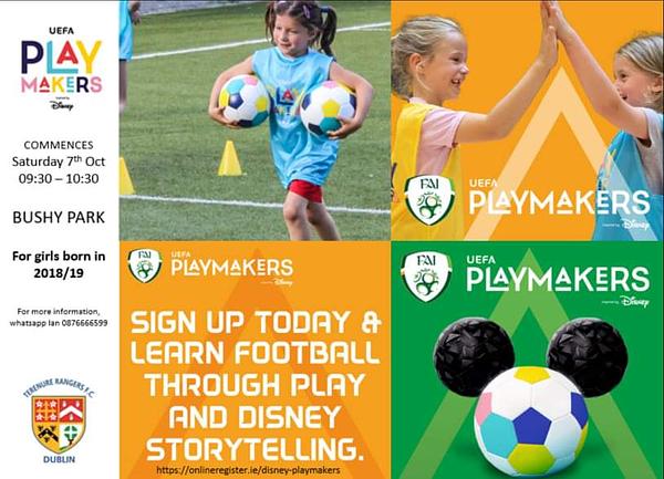 The UEFA Disney Playmakers programme is back this October and you can now register to be involved at Terenure Rangers FC