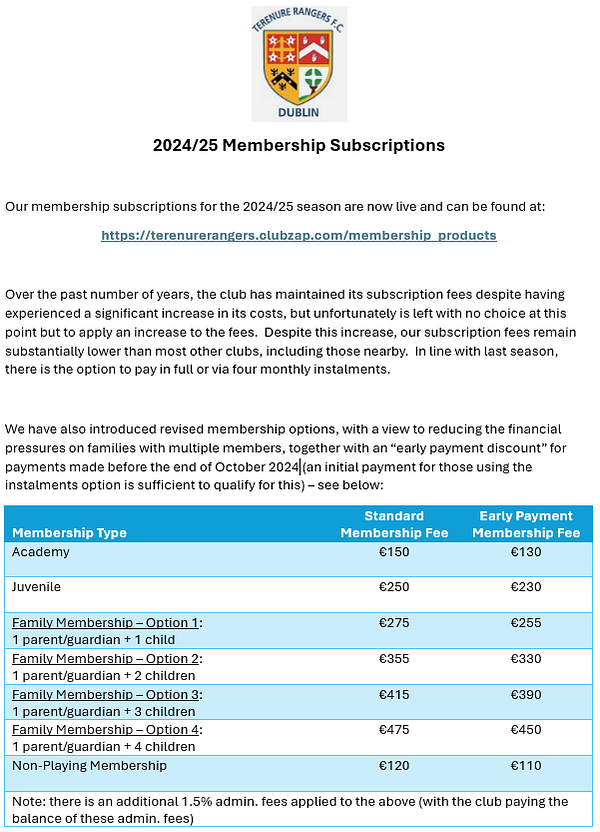 A reminder that the "early payment discount" for 2024/25 membership subscriptions expires at the end of this month - see attached for more details. Payment can be made within the ClubZap app (within the 'Clubhouse' section) or by using the below link: